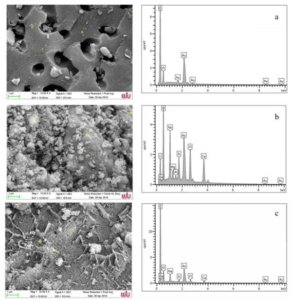 將炭化生物質(zhì)與氯化鈉分別以1:0、1:1和1:2的比例混合,通過化學(xué)活化來制備活性炭,接著通過SEM-EDS和XRF分析來確定活性炭的形態(tài)(圖1),表明活性炭1:0具有多孔表面,但是在用氯化鈉活化后,檢測到高度光滑的織構(gòu);钚蕴康脑亟M成通過SEMEDS和XRF評估,選擇了三個典型點來檢查元素分析。顯然,活性炭1:0主要由碳(C)和氧(O)組成,其中C元素的含量為78.84wt%。至79.65wt%。O元素的含量為20.35wt%至21.16wt%。在活性炭上活化了不同的氯化鈉后,更換了元素。