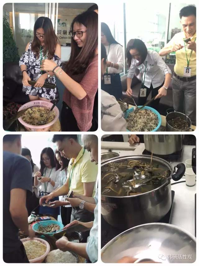 悠悠粽子香, 濃濃端午情,專注于活性炭的韓研人一個(gè)個(gè)爭先恐后地大顯身手,真別說,包粽子還真是一門技術(shù)活,男同胞和女同胞們進(jìn)行對抗PK賽,幾乎勢均力敵,但最后還是讓心靈手巧的女同胞們奪了冠。