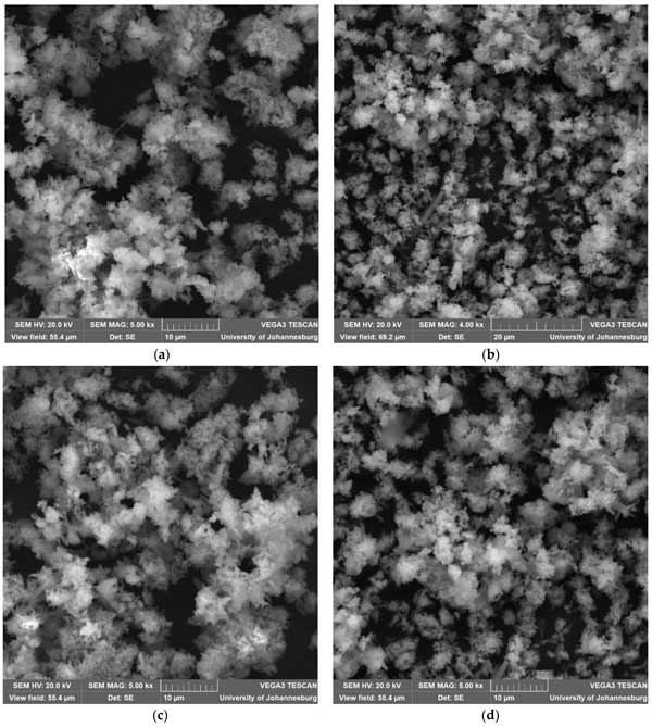 活性炭由各種富含碳的材料制成,例如煤、椰殼或木材,通過活化過程可提高其孔隙率和表面積。這種高表面積加上孔隙網(wǎng)絡使活性炭能夠吸附各種物質(zhì)。其吸附能力源于物理吸附(污染物受范德華力控制)和化學吸附(碳表面和污染物分子之間發(fā)生相互作用)。圖1a–d中的SEM 圖像用于說明吸附劑的表面形貌。這些SEM圖像顯示活性炭的形貌為無定形。