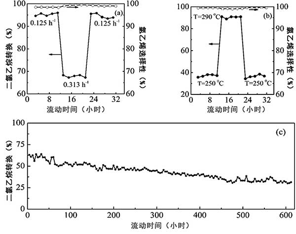 c、顯示出二氯乙烷轉(zhuǎn)換為初始?xì)涞囊话,而氯乙烯選擇性是在任何時(shí)候都在99%以上。結(jié)果表明氮摻雜活性炭催化劑具有良好的穩(wěn)定性。