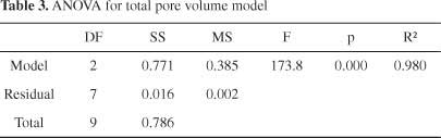 這個方程適用于微孔體積預測,用包含文獻中的數(shù)據(jù)和由我們獲得的數(shù)據(jù)的測試樣品進行評估。共測試了36個樣本。圖形比較(圖4)表明該模型具有良好的預測能力。該試驗樣品組的平均絕對誤差為0.05cm 3 g -1,平均相對誤差為16.4%。表2給出了模型的統(tǒng)計參數(shù)。