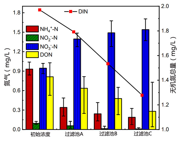 圖3:活性炭過(guò)濾器進(jìn)水和出水氮的變化。
