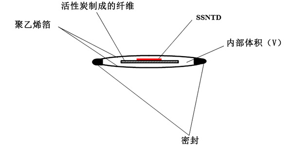 帶溫度補(bǔ)償?shù)幕钚蕴刻綔y(cè)器模塊設(shè)計(jì)如圖1所示。內(nèi)部傳感器使用活性炭吸附器和固體核徑跡探測(cè)器(SSNTD)。在本實(shí)驗(yàn)中,使用了三種活性炭制成的纖維。活性炭用作氡收集器/散熱器,而SSNTD則檢測(cè)輻射量。補(bǔ)償模塊的壁由低密度聚乙烯或高密度聚乙烯箔制成。根據(jù)造型選擇箔的厚度和表面積,以達(dá)到合適的溫度補(bǔ)償。。當(dāng)探測(cè)器在探測(cè)器模塊外時(shí),校準(zhǔn)系數(shù)為CF0。然而,當(dāng)探測(cè)器放置在其校準(zhǔn)因子內(nèi)時(shí),平衡時(shí)將為CF =CF0.ρ,其中ρ是“穿透率”,即模塊體積內(nèi)空氣中的平衡時(shí)氡濃度與濃度的比值在它周圍的空氣中。CF0與吸附容量k成正比并且遵循與k相同的溫度趨勢(shì),而CF與kρ成正比。正如在其他地方所指出的,穿透體積中壁的部分ρ隨著溫度的升高而增加,因此溫度的趨勢(shì)與k的趨勢(shì)相反。選擇氣體擴(kuò)散通過的壁材、厚度、壁表面積和“補(bǔ)償模塊”的體積,以使kρ的溫度變化在應(yīng)用的溫度區(qū)間內(nèi)盡可能小。