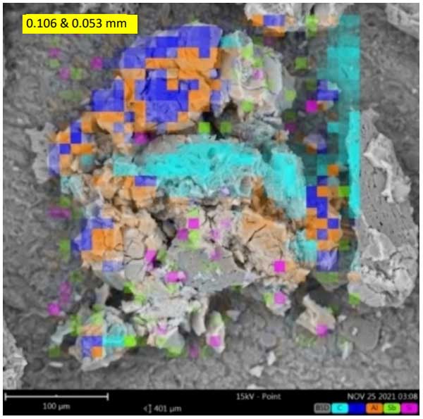 活性炭電凝工藝回收金,使用鐵和鋁電極的電凝工藝在水介質(zhì)中以0.8000±0.001g/L的濃度凝結(jié)了活性炭顆粒,盡管使用鋁電極的電凝工藝在細(xì)顆粒的回收方面表現(xiàn)出更好的性能。顯微SEM圖像顯示了活性炭顆粒上的鐵或鋁沉積物。還觀察到兩個(gè)或多個(gè)顆粒結(jié)合成單一化合物。電凝處理后的粒度總體上大于處理前。映射函數(shù)驗(yàn)證了金在整個(gè)活性炭顆粒中以低濃度均勻沉積,除了在金濃度增加的某些地方。這些地方通常對(duì)應(yīng)于活性炭中的地表下空腔或孔隙。電凝工藝在水性介質(zhì)中的最佳操作條件下活性炭對(duì)金的回收率為96-100%。