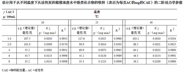 橄欖油廢水中酚類(lèi)化合物處理由大多都由活性炭來(lái)吸附,本期帶大家了解活性炭的吸附劑量和溫度的影響。在最佳條件下(每100毫升8克活性炭),每克活性炭表示當(dāng)量mg的活性炭的最大吸附容量為10.8℃時(shí)為35.8℃,25℃為35.4℃,40℃時(shí)為36.1℃ C。偽二階模型被認(rèn)為是最適合于動(dòng)力學(xué)結(jié)果,并且選擇Langmuir等溫線來(lái)更好地描述吸附系統(tǒng)。結(jié)果證實(shí)了活性炭從橄欖油流出物中幾乎除去所有酚類(lèi)化合物部分的效率。