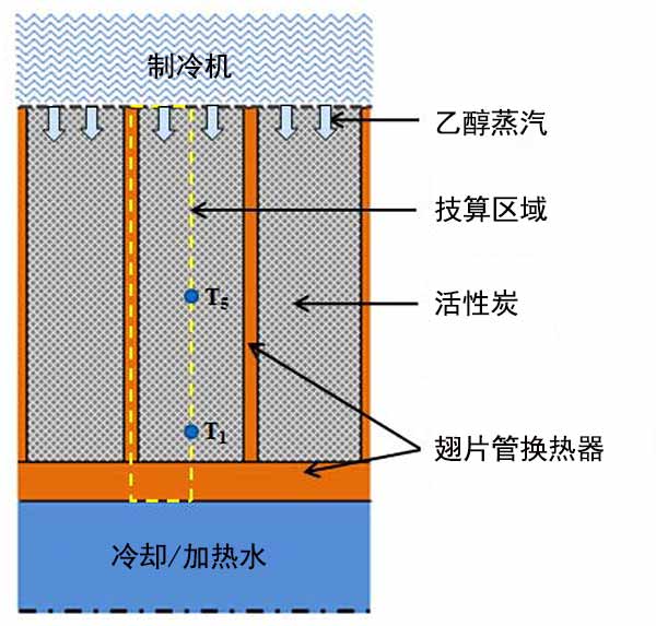 圖1.活性炭解吸過(guò)程中吸附冷卻系統(tǒng)的示意圖。