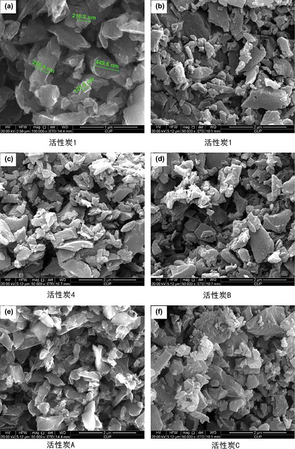 為了研究活性炭結(jié)構(gòu)對(duì)氣體混合物的分離性能的影響,七種活性炭,即活性炭1、2、3、4和活性炭A、B、C。評(píng)估了SEM圖像及其顆粒分布示于圖2和3中。對(duì)比了活性炭的比表面積,微孔體積,孔徑,中值粒徑和骨架密度等。在這些活性炭中,1234衍生自相同類型的活性炭,并具有相同的比表面積,微孔體積,孔徑和骨架密度,但具有不同的粒徑。這類活性炭的中值粒徑分別為1.14、1.41、2.07和6.18μm。在活性炭中,粒徑?jīng)Q定了微孔的利用率,孔徑控制了氣體分子進(jìn)入活性炭孔隙的可能性,比表面積和孔隙體積決定了存儲(chǔ)容量。這種孔徑和粒徑比較適合分離氣體混合物,但是,對(duì)于孔體積或比表面積,CO 2吸收越大越好。下面我們選擇兩種氣體混合物來評(píng)估活性炭結(jié)構(gòu)對(duì)分離性能的影響,即兩種碳?xì)浔壤煌幕旌蠚怏w。將這兩種進(jìn)料氣體混合物與七種活性炭進(jìn)行分離實(shí)驗(yàn)。實(shí)驗(yàn)條件溫度和初始?jí)毫Ψ謩e為10℃和約2.0MPa。