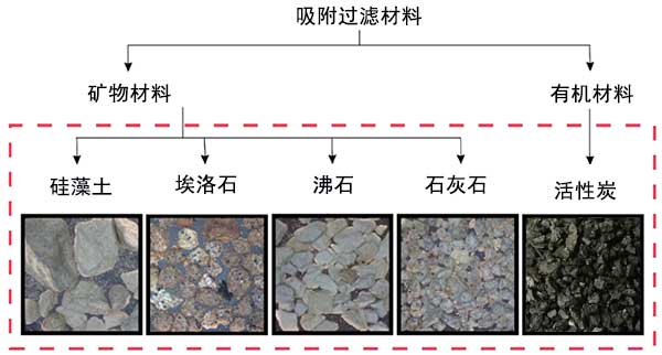 在分析中使用活性炭和未經(jīng)修飾的礦物材料,例如沸石,石灰石砂,硅藻土和埃洛石(圖1)。礦物材料是不經(jīng)受預(yù)處理,以確保使用最經(jīng)濟(jì)上有利的材料。本期使用的活性炭是一種微孔材料,由微孔表面和體積值和相對(duì)較低的中孔表面值證明該材料的表面。硅藻土,沸石和埃洛石是中孔材料,因此其特征在于具有中間孔的平均比表面積,所述中孔具有不規(guī)則尺寸和形狀的窄裂縫形狀。在埃洛石中觀察到這些礦物中介孔的大比表面積和體積,而硅藻土的孔隙比較少,石灰石砂可歸類為無(wú)孔材料。