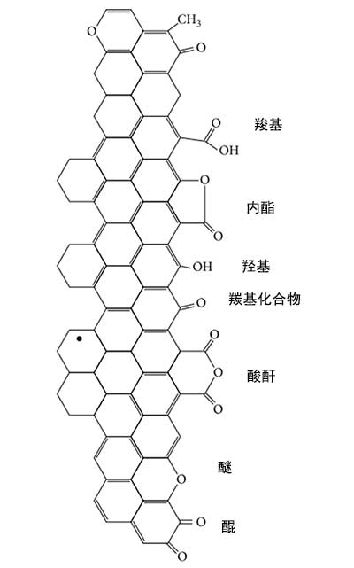 圖4:在活性炭上發(fā)現(xiàn)的主要表面基團(tuán)的示意圖。