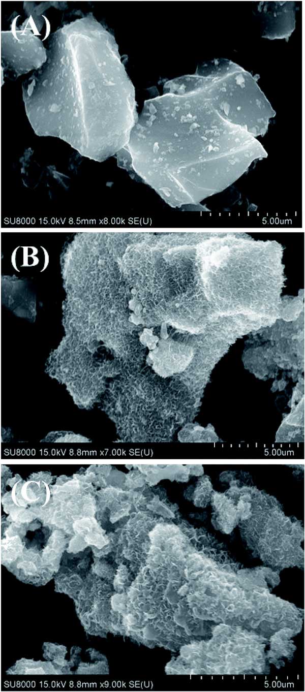 圖1:是鐵離子吸附過(guò)程后幾種活性炭的SEM圖像。