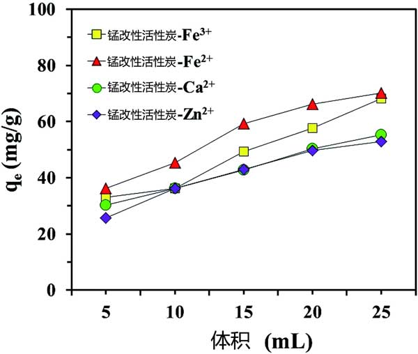 圖3:使用不同體積的硝酸從錳改性活性炭中解吸金屬陽(yáng)離子。