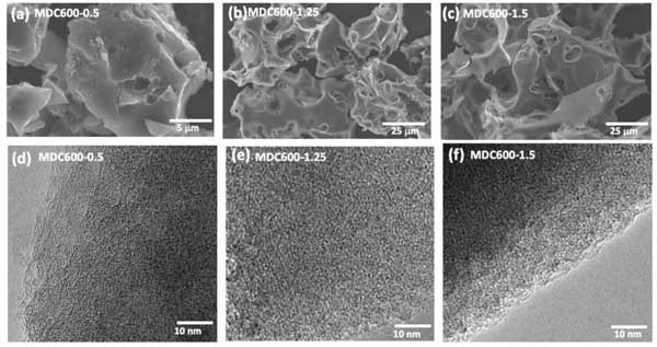 圖1:不同孔徑活性炭的SEM圖像。