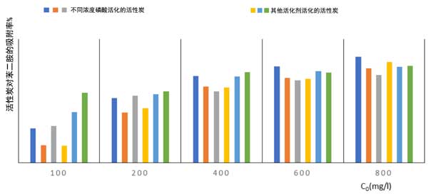 活性炭的制備在室溫下干燥之前,用蒸餾水洗滌,隨后進行粉碎研磨處理并使用電篩篩分,以獲得63μm的均勻粉末粒度。所得粉末在使用電爐煅燒前用磷酸進行化學預處理。根據(jù)特定比例添加磷酸來進行活化,并在110℃的爐中干燥48小時。隨后將干燥混合物引入坩堝陶瓷中,在450℃下在爐中煅燒,使其孔隙逐漸打開。用蒸餾水徹底清洗活性炭表面的活性殘留物,該步驟用來控制活性炭的pH。這樣得到的活性炭在110℃的烘箱中再次干燥48小時獲得成品。