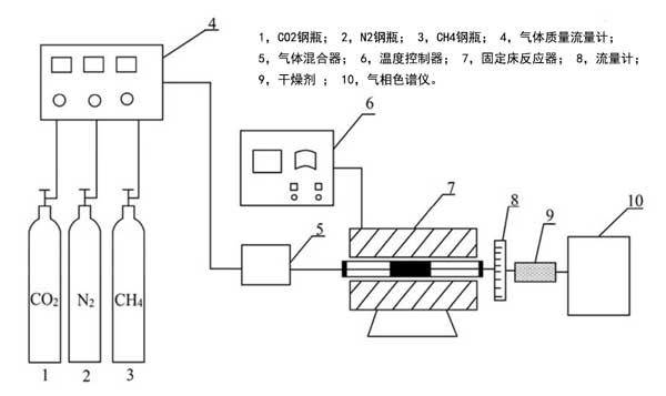 在動態(tài)條件下,將二氧化碳捕集在特殊的固定床反應器中,將活性炭樣品放入其中,并使給定成分的氣體混合物通過。在這種情況下,控制進出混合物的流速以及反應器中的溫度。氣相色譜儀用于確定吸附的二氧化碳量。在動態(tài)條件下確定吸附活性的實驗裝置示例如圖3所示。為了研究靜態(tài)條件下活性炭對二氧化碳的吸附過程,使用了自動裝置,該裝置可以記錄在各種溫度(25°C和0°C)和最高1atm的壓力下的吸附-解吸等溫線?梢栽谠O(shè)備上通過體積法在1atm以上的壓力下吸附CO2。在這種情況下,可以在40至160°C的溫度范圍內(nèi)以及最高36atm的壓力下進行測量。