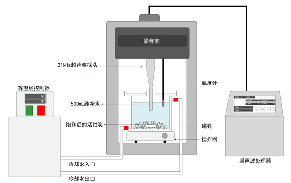圖1:飽和活性炭超聲再生的實(shí)驗裝置。